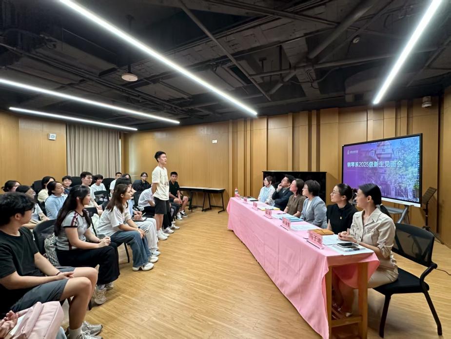 9月16日中午,上海音乐学院钢琴系2025级新生见面会在淮海路校区A楼1-2教室顺利举行。党支部副书记(主持工作)孟莉、主任江晨、副主任孙颖迪、党支部副书记承倩雯、辅导员马子迪及秘书傅媛媛出席会议,为新生开启融入钢琴系大家庭的第一课。