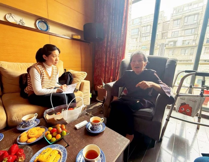 在魏老师建议下,陈文琦同学从2025年3月底开始研读校史、搜集整理周教授的个人资料,为接下来的访谈储备感性认知和指导纲领。4月11日,院关工委副主任兼秘书长、离退休党委书记、离退休工作处处长易慧老师、离退休工作处袁丁老师和魏星老师共同带领陈文琦同学前往周教授家中进行慰问与访谈。周教授毫无保留地分享了她在上音的求学时光和几经辗转的教职生涯,她1949年考入上音,先后于青岛艺术学校、上海师范大学和母校上音任教,与姐姐周小燕教授一并为国家的音乐艺术事业做出贡献。虽然伴随着大时代和小家庭带来的艰辛,但她总是满怀赤子心,直面困难。在教育、教学岗位上,她也始终坚守育人初心、淡泊名利,一心扎根音乐教学事业。