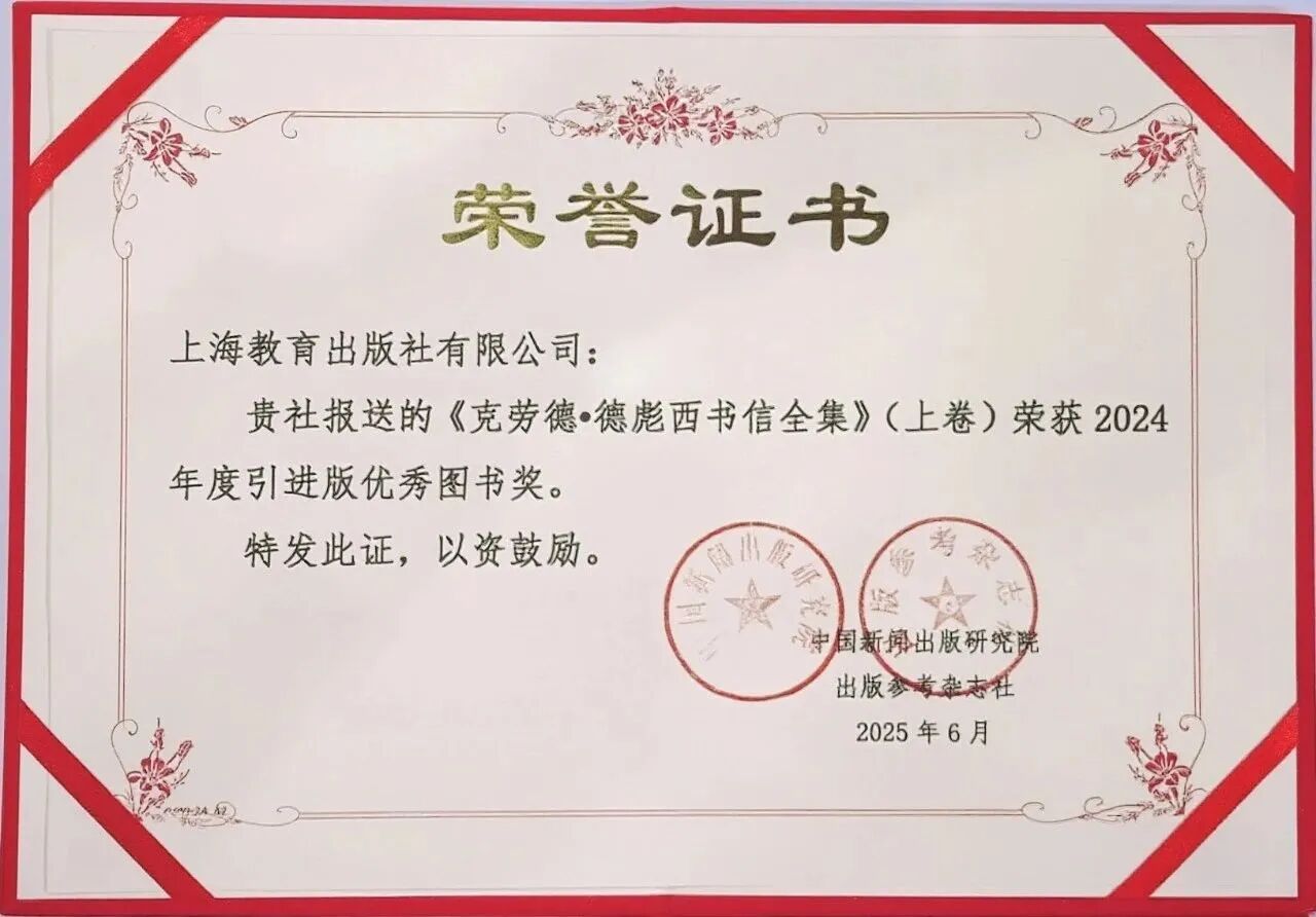 近期,由上海音乐学院钢琴系郝端端副教授翻译的《克劳德·德彪西 书信全集(上 卷)》在北京荣获中宣部新闻出版研究院第二十四届输出版引进版优秀图书推介活动“2024年度引进版优秀图书奖”。此书一经出版就受到了音乐学界与爱好者的热烈追捧,这一成果充分彰显了该书的卓越出版价值及其在业界的高度评价。