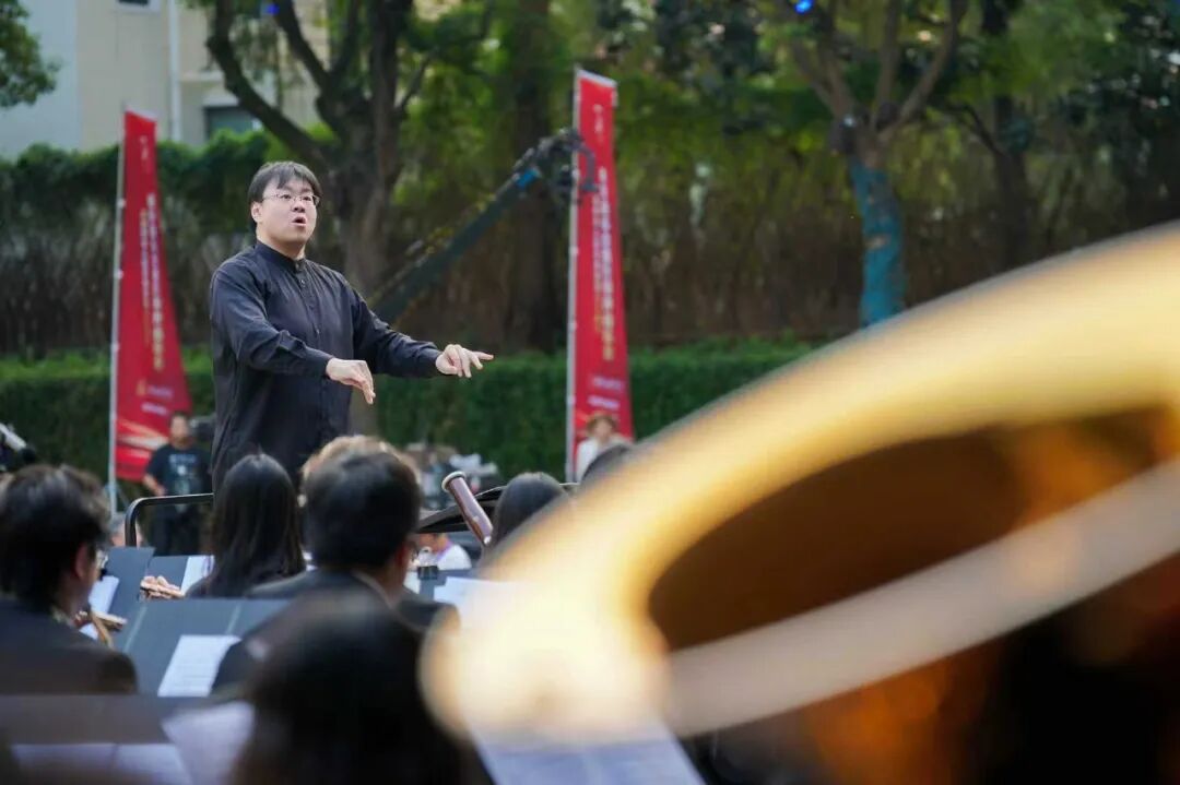 上音于2024年元旦正式面向社会公众开放。一年多以来,上音校园开放不断升级,先后举办多个主题展览、蔡元培美育大讲堂、草坪音乐会等,建设可阅读、可聆听、可感知的沉浸式开放校园,将优质艺术资源向全社会辐射,将校园文化与城市公共生活相融,助力城市文化建设,打造习近平文化思想最佳实践地。国庆期间,上音开放空间将持续供市民预约参观,并将在多处进行快闪演出。当音乐会压轴曲目《歌唱祖国》的旋律响起,现场观众在院长廖昌永的带领下,一边挥舞红旗一边齐声合唱,歌声汇聚成一股温暖而磅礴的洪流,将每一个个体与伟大的祖国紧密相连。