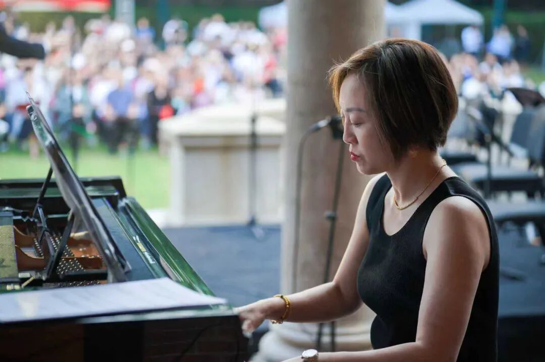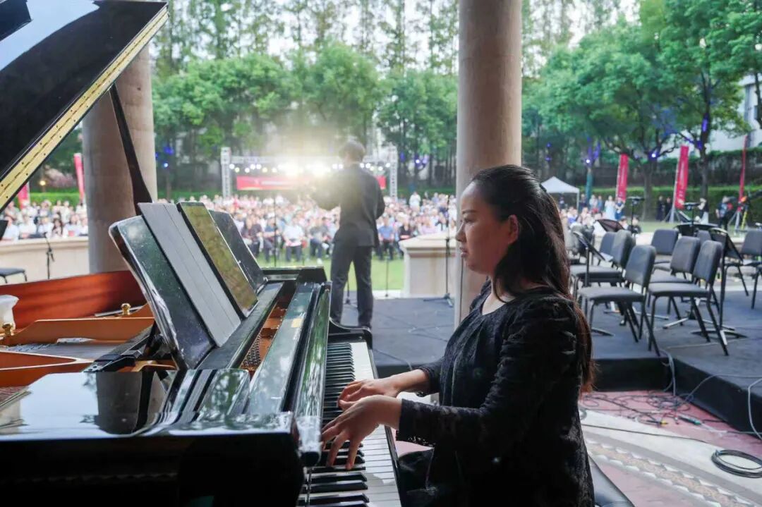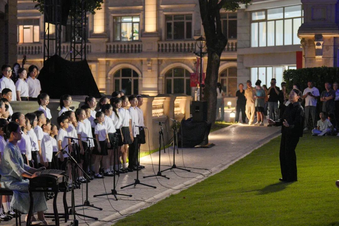 今天,上海音乐学院在汾阳路校区城市音乐会客厅前草坪,为广大市民和音乐爱好者献上一场“国庆草坪音乐会”。傍晚时分,华灯初上,在秋夜的微风中,音符与百年建筑交织共鸣,为“人民城市”的生动实践,写下华美的注脚。