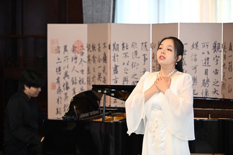 声乐与钢琴合作《山中》(声乐:罗玉(特邀)、钢琴:苏航宁)在音乐中领略到中华文化中对自然的崇尚。《踏雪寻梅》(声乐:戴之力(特邀)、钢琴:苏航宁)展现了中华文化中对坚韧与美好品质的颂扬。《山之高》(声乐:罗玉(特邀)、钢琴:苏航宁)将山川的壮丽与情感的深邃完美融合,在音乐中探寻中华文化里对崇高精神的向往与对自然之美的深情礼赞。《水调歌头·明月几时有》(声乐:戴之力(特邀)、钢琴:苏航宁)悠扬的琴声与深情的歌声交织,感受中华文化中特有的诗意。《在水一方》(声乐:汤竣雁、钢琴:葛灏)那温婉的旋律如潺潺流水,感受到中华文化中对美好情感的细腻表达。《鸿雁》(声乐:汤竣雁、钢琴:葛灏)那深情悠扬的旋律似鸿雁翱翔,感受其蕴含的对故乡的眷恋与对远方的憧憬。