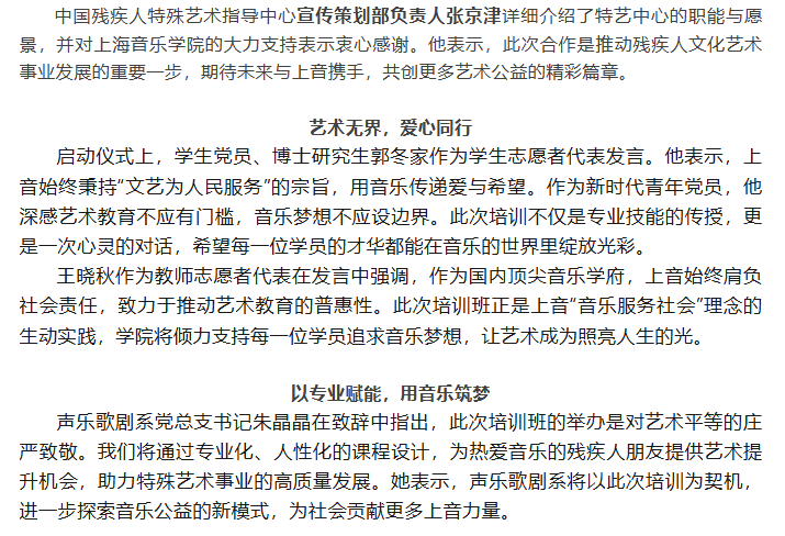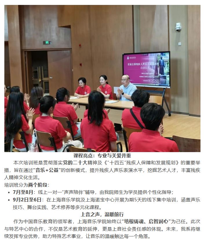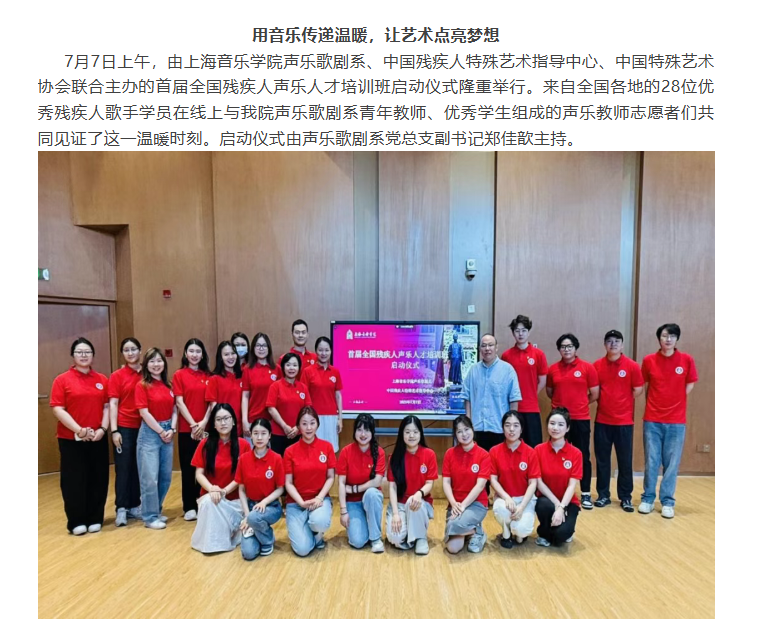 首届全国残疾人声乐人才培训班在上海音乐学院声乐歌剧系举行启动仪式