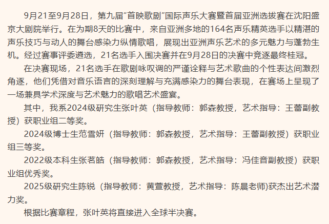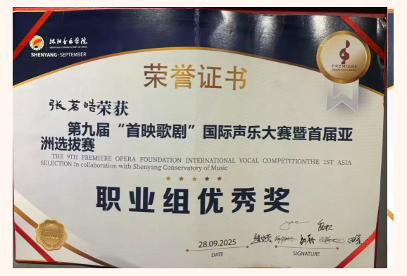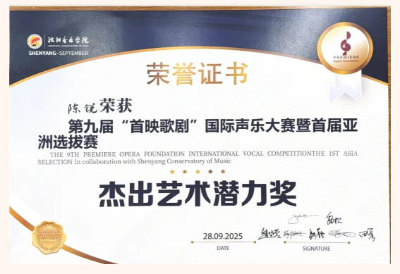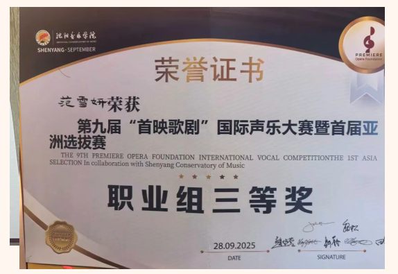 喜报|上音声歌系学子在第九届“首映歌剧”国际声乐大赛暨首届亚洲选拔赛中喜获佳绩