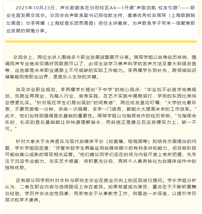 声歌启航 校友引路——职业生涯发展交流会