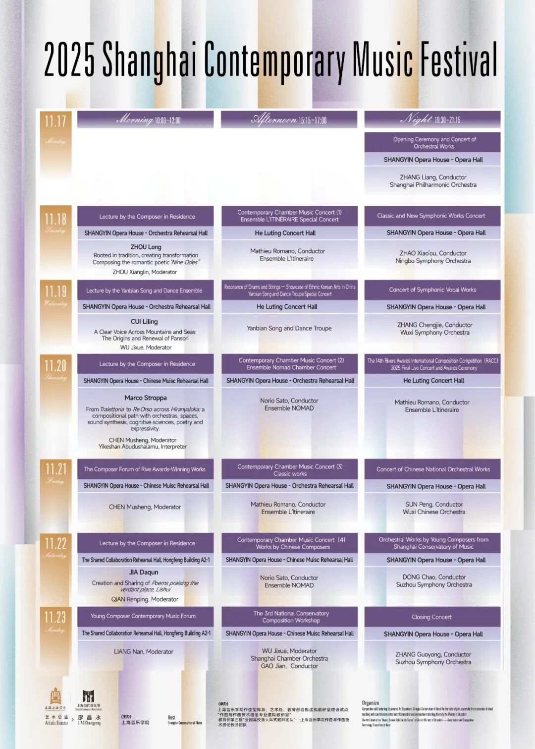华章再启,沪音共鸣。2025上海当代音乐节将以更加开放的姿态、更加前沿的探索、更加人民的立场,打造一场属于全人类的听觉盛宴,为中国式现代化注入澎湃的音乐动能。我们诚挚邀请您深入参与本次音乐节,在音符中感受时代的律动、文化的交融与未来的召唤。