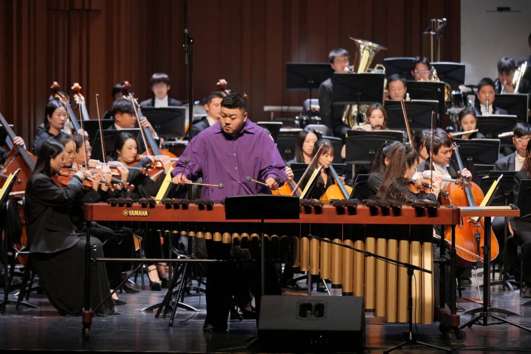 本场音乐会的压轴之作《湾区鹤鸣》——为马林巴与乐队而作(2024),同样由叶小纲教授创作,打击乐演奏家余乐担任马林巴独奏。该作品受深圳“一带一路”国际音乐季委约,标题中的“鹤”是中华传统文化中寓意吉祥的动物,作曲家希望借此表达粤港澳大湾区欣欣向荣、生态祥和的景象。整部作品有着激越澎湃和阳光俏皮的性格,作曲家充分挖掘马林巴的惊艳魅力——承载欢欣鼓舞的神韵,亦展现深邃睿智的哲思,辅以岭南地域的特色旋律,用音符记录下优雅鹤群在中国南方绵延海岸翩翩起舞的美丽情景。