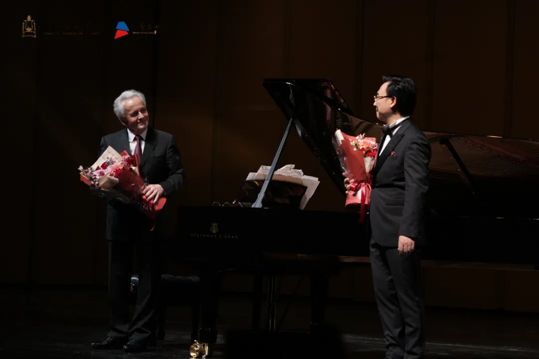 音乐会以上音与德国大熊出版社合作出版的《玫瑰三愿——中国艺术歌曲16首》为曲目蓝本,呈现了从黄自《玫瑰三愿》《春思曲》到青主《我住长江头》《大江东去》等十六首经典作品。廖昌永的演唱深情隽永,兼具学术考据与艺术表现;霍尔的钢琴伴奏则展现出对中国美学“虚实相生”意境的深刻理解,营造出深邃的审美空间。面对泉州观众的热情和掌声,廖昌永返场演唱《教我如何不想她》《思乡》。霍尔教授表示:“中国艺术歌曲中含蓄而深刻的美学特质,为世界音乐殿堂贡献了独特的东方智慧。”