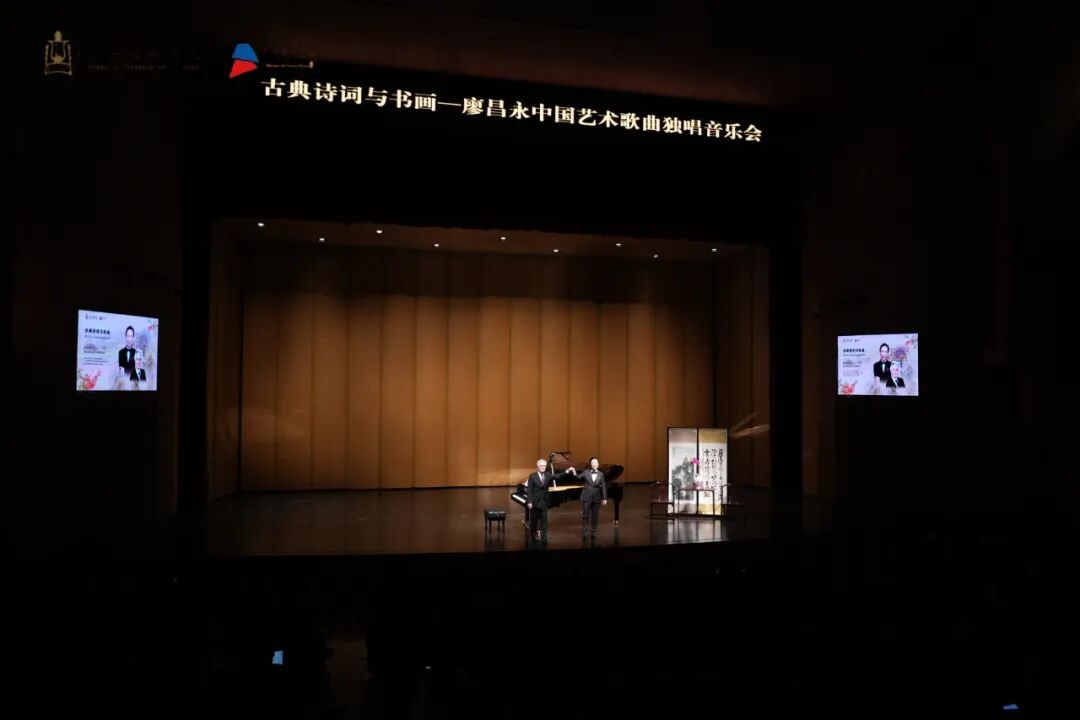 11月17日晚,上海音乐学院院长廖昌永与德国声乐合作钢琴大师哈特穆特·霍尔,在泉州大剧院再度联袂呈现中国古典诗词与书画——中国艺术歌曲独唱音乐会。