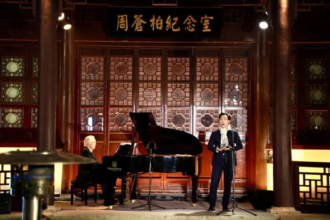 夜色中的东湖畔,廖昌永深情唱起《教我如何不想她》《水调歌头·明月几时有》《我住长江头》等经典艺术歌曲,与声乐歌剧系学生张功浩、冯浩然、范雪妍、乌列热等一起,在这片周先生魂牵梦绕的故土,用歌声追思恩师的音容风范。