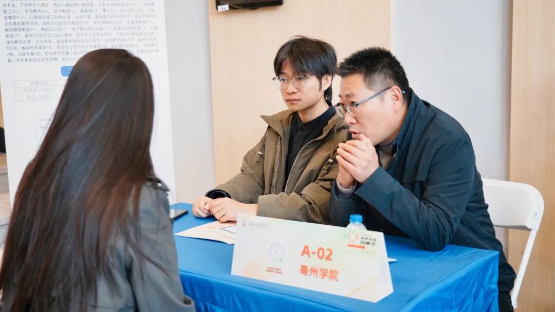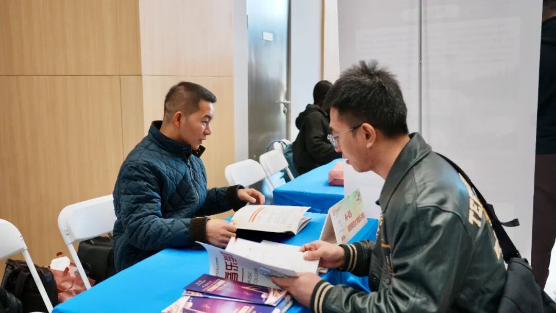 院党委副书记、副院长汤隽杰与用人单位亲切交流,了解行业人才需求趋势和单位招聘计划。