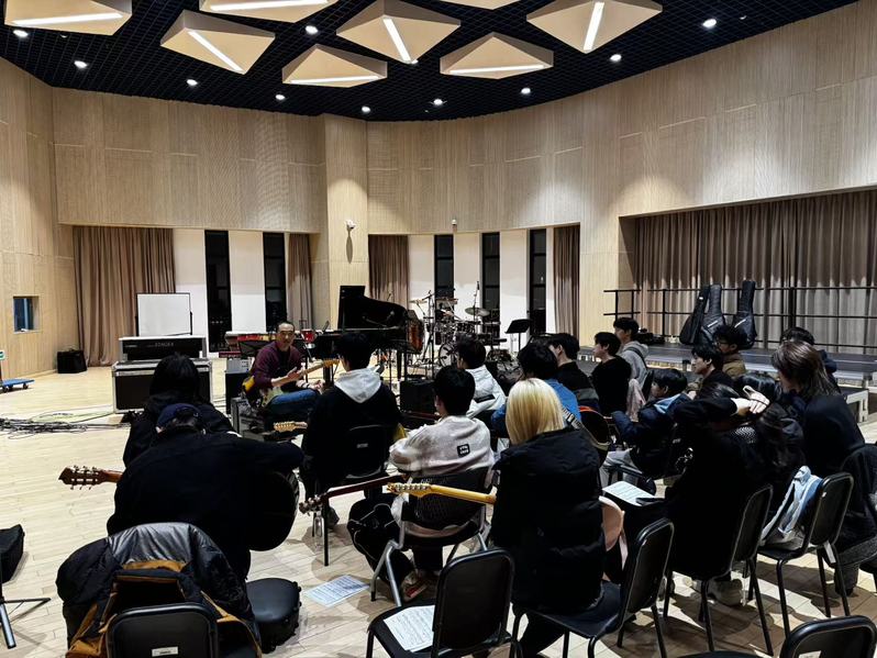 2025年11月18日,知名爵士吉他演奏家、作曲家、音乐制作人顾忠山先生受邀于上海音乐学院零陵路校区407L排练厅举办大师课,同上音现打系师生展开深度学术交流,为国内外现代音乐文化的创新融合搭建了优质平台。顾忠山是业界公认的现代音乐领域领军人物,兼具精湛演奏技艺与深厚理论积淀。他深耕爵士、放克等风格数十年,不仅活跃于全球各大音乐舞台,与众多国际顶尖音乐人、乐团达成长期合作,录制多张广受赞誉的专辑并斩获多项行业大奖,更在音乐教育领域积累了丰富经验,其融合东西方音乐理念的创作思路与教学方法,在国内外音乐界极具影响力。