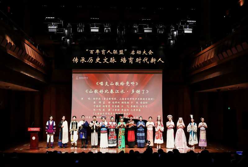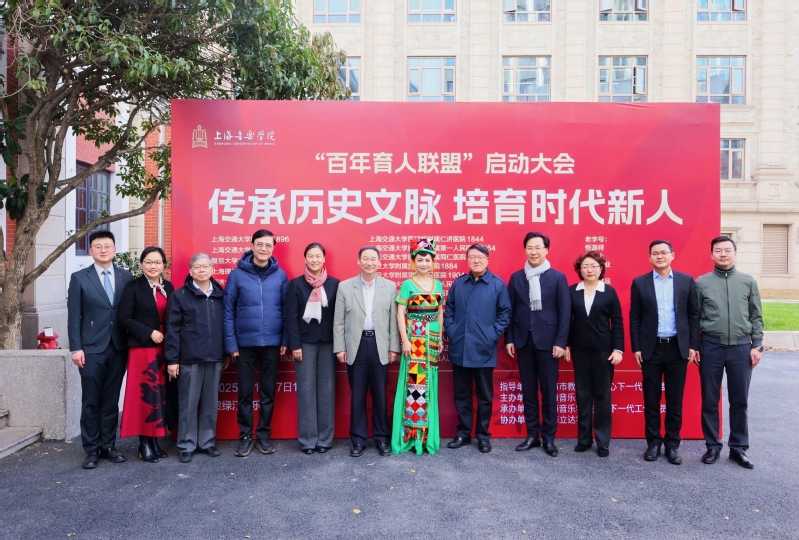 2025年11月27日下午,“传承历史文脉 培育时代新人——百年育人联盟”启动大会在上海音乐学院贺绿汀音乐厅举行。上海市教育系统关工委主任李宣海、执行主任高德毅、驻会主任金勤明,上海音乐学院党委书记裴小倩、关工委常务副主任李艳玲、关工委副主任徐孟东、华天礽等,与来自沪上百年高校、附属医院、老字号企业的代表共聚一堂,共同见证这一创新育人平台的启动。