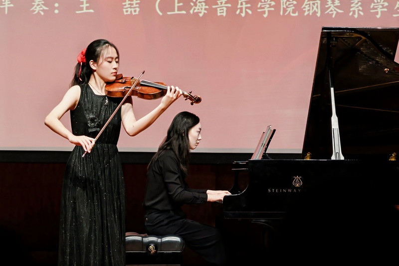 在大会的开场与尾声,独具上音特色的音乐艺术表演先后呈现。歌唱家、上海音乐学院教授杨学进和声乐歌剧系学生们在开场带来开场曲《唱支山歌给党听》《山歌好比春江水·多谢了》。尾声,由上海音乐学院附中学生顾裕雯带来小提琴独奏《梁祝·化蝶》,动人心弦的旋律绕梁不绝。