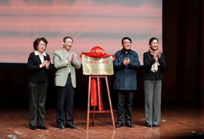 在启动仪式上,李宣海、高德毅、裴小倩、李艳玲共同为“百年育人联盟”揭牌。