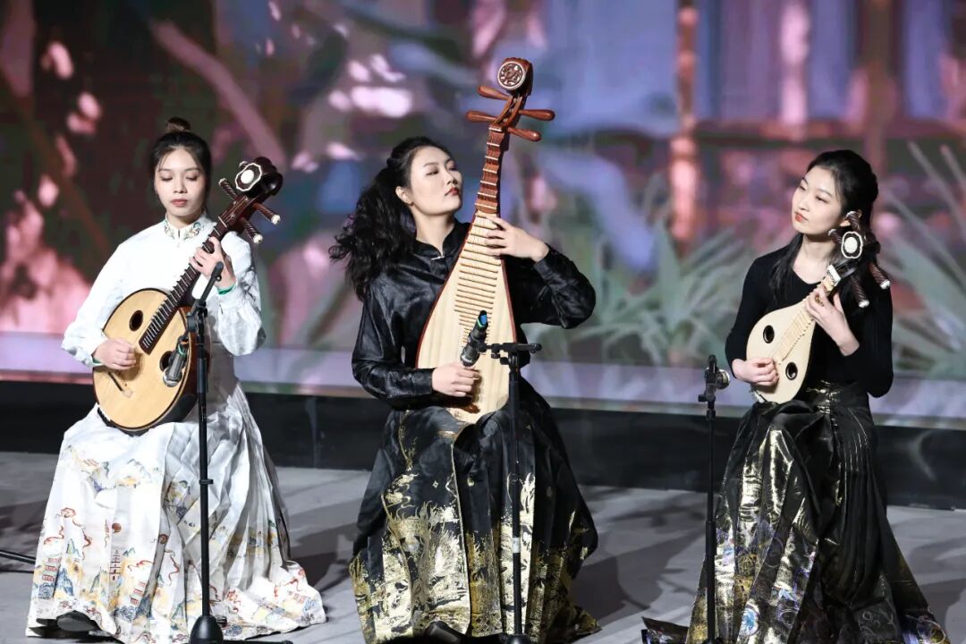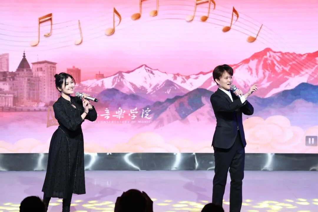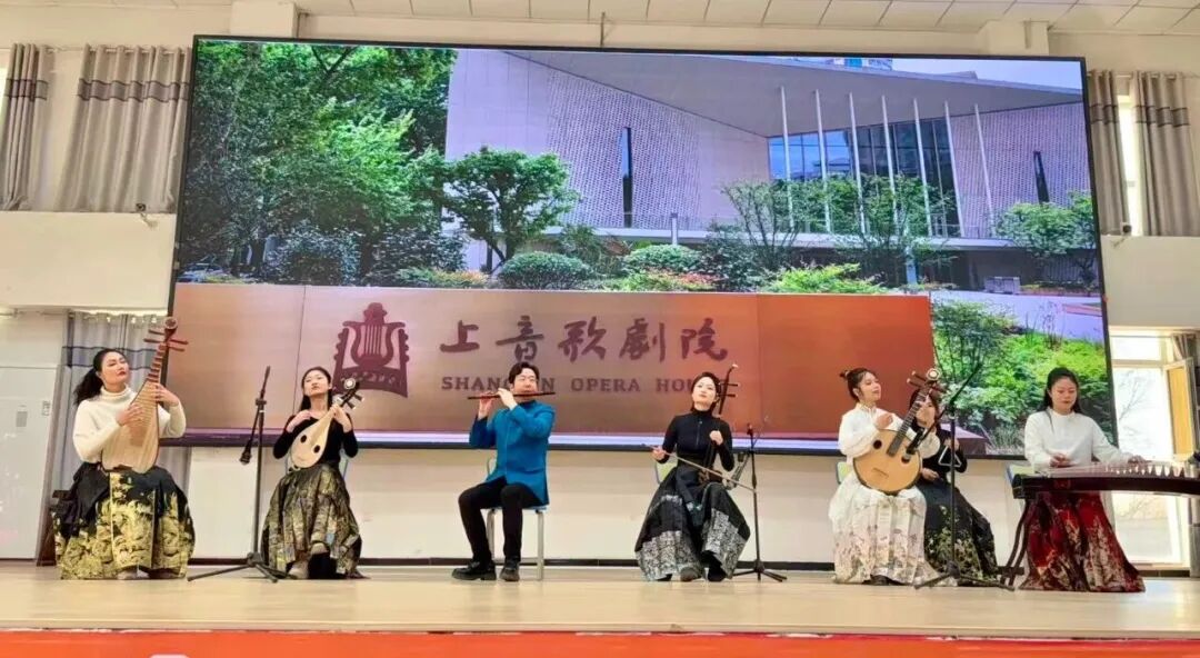 团队通过讲解与演绎相结合的方式,在各校举办了多场生动的音乐思政课。民乐系师生们先后演绎了重奏《上海谣》、二胡独奏《拉丁风情》、古筝重奏《丰收锣鼓》、弹拨重奏《送你一朵玫瑰花》、琴箫合奏《大鱼》以及吹管重奏《正月十五闹雪灯》等多部作品,融汇海派韵味与民族器乐的表现力,终曲以声歌系学生带来的歌曲《看山看水看中国》圆满收尾,为现场学生带来了一场跨越地域与风格的艺术体验。