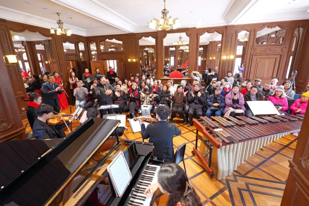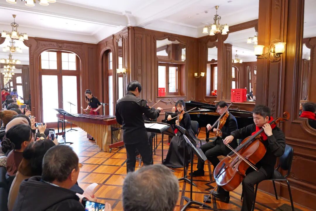 这是上音连续第三年在大年初一与市民相约新春音乐会。上音校领导、师生代表、市民游客齐聚一堂,共贺新春,百年历史建筑内回荡着奔腾激昂的旋律,观众在乐声中感受新春的欢腾与希望。