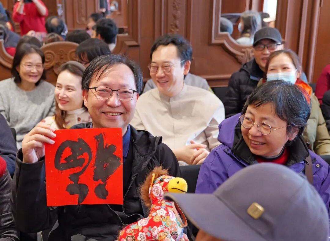 音乐会现场更有击鼓传花环节,三位幸运的市民观众获得院长廖昌永手写“福”字。尾声部分,现场观众合唱歌曲,将氛围推至高潮,现场洋溢着新春佳节喜庆祥和的节日氛围。