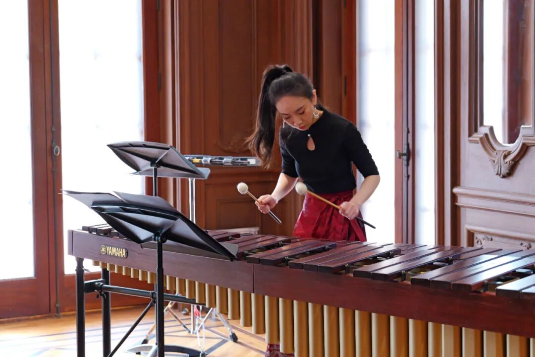 打击乐博士生张佳婧演绎的全新改编的马林巴版《草原英雄小姐妹》惊艳亮相,6分钟快慢快的精巧结构,以灵动之音演绎赤诚情怀,别样诠释经典魅力;钢琴研究生张新禾与室内乐团带来《春之声圆舞曲》,以钢琴与弦乐四重奏交织出维也纳圆舞曲的轻盈。