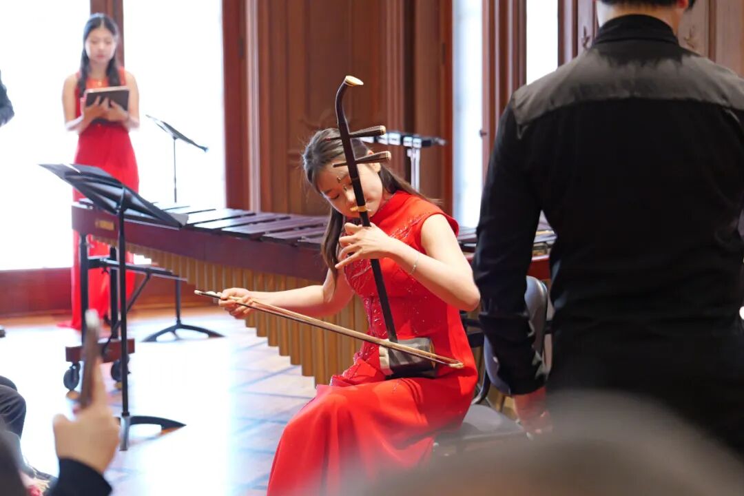 二胡博士生朱婧与作曲博士生徐悦栋以一曲《赛马》,气势如虹,将马年的热烈氛围推向高潮;室内乐团版《绒花》温情收尾,旋律温婉、余韵悠长,以深情改编唤醒经典旋律的隽永。