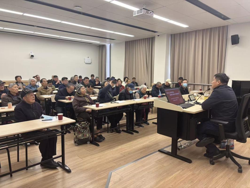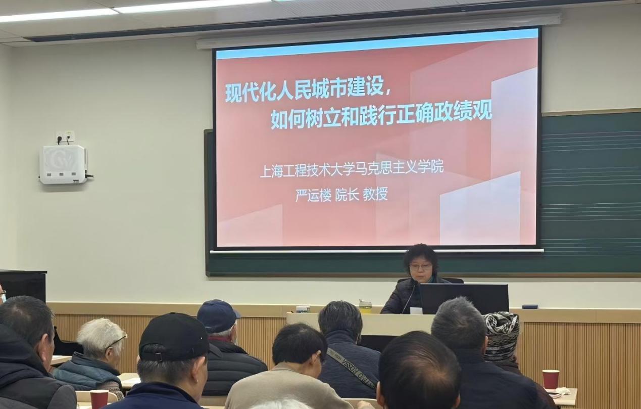 本次讲座特邀上海工程技术大学马克思主义学院院长严运楼教授主讲。他以“建设现代化人民城市,如何树立和践行正确政绩观?”为主题,紧扣党的二十届四中全会精神,围绕“建设现代化人民城市”时代背景,结合“十五五”开局起步关键节点的要求,系统阐释了树立和践行正确政绩观的核心要义、实践路径,深入解读了正确政绩观与推进中国式现代化、建设人民城市的内在关联。为老党员们清晰解答了“政绩为谁而树、树什么样的政绩、靠什么树政绩”的根本问题,带来了一场思想深刻、内容丰富的理论辅导,让老党员们进一步明晰了践行正确政绩观的时代意义和具体方向。