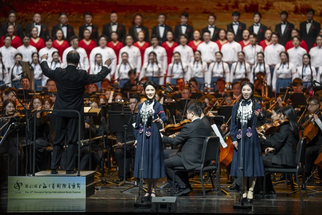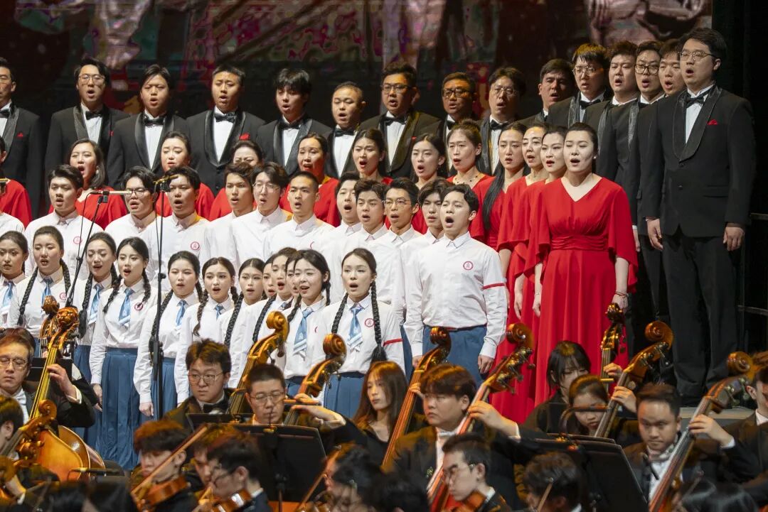 今晚,作为全市首场纪念红军长征胜利90周年的大型主题文艺演出,第41届上海之春国际音乐节开幕音乐会“永恒的征途”在北外滩友邦大剧院唱响。音乐会由上海音乐学院院长廖昌永领衔200多位上音师生,作曲指挥系教授张国勇执棒上海音乐学院交响乐团、上海音乐学院合唱团和上海爱乐乐团、上海歌剧院合唱团联袂呈现,演出团队还集结长征沿线优秀艺术家,以激昂乐音重温峥嵘岁月,以赤子之心赓续红色血脉。上音校领导班子全体成员集体观看演出。