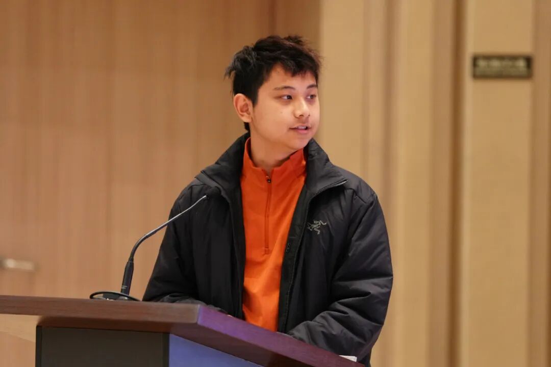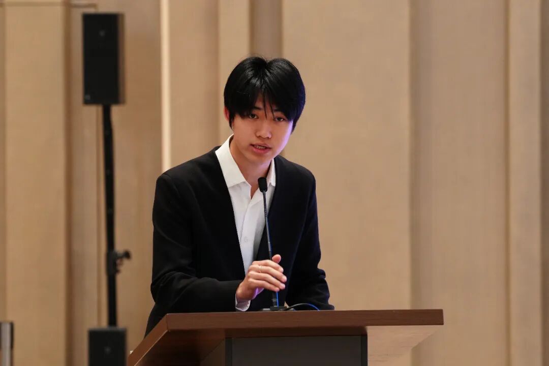 作曲指挥系胡亦皓代表团队带来《织音》项目,以声学技术为核心,打造高效降噪解决方案,用科技优化声音体验。