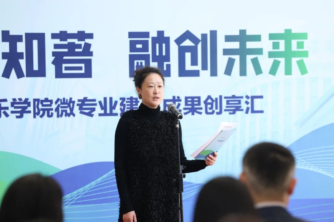 教务处处长杨茹文在发言中谈了三点切身的体会:一是,作为全国首个开设微专业的音乐院校,上音此举是落实教育部和市教委要求、加强素质教育和通才培养的务实行动。二是,去年已开设的两门微专业运行平稳、反馈良好,接下来还将陆续新增多门微专业,并逐步形成体系。三是,教务处将持续把微专业做深、做实,成熟的课程将逐步转化为在线课程和通识课程,融入本科教学整体布局,惠及更多的学生。