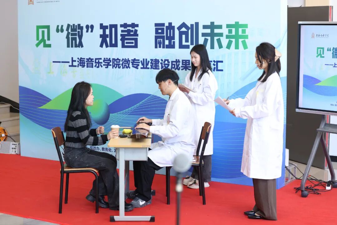 人才培养模式改革是深化新一轮教育综合改革、落实推进“立德树人”一号工程的核心内容。为实施《上海音乐学院深化综合改革方案(2025-2030年》,以“重服务、强贡献”为导向,4月7日,上音在零陵路、汾阳路两校区举办综改人才培养模式改革专项——本科微专业建设成果展示活动。本次活动集中展示了学校首轮微专业建设的阶段性成果,聚焦已开设并授课一学期的“音乐科创”与“音乐与健康”两个微专业,展现了上音在跨学科复合型人才培养上的创新探索,对未来拟开设的新一轮微专业进行展示,更好地推进“一站式”学生社区学业支持进社区工作。