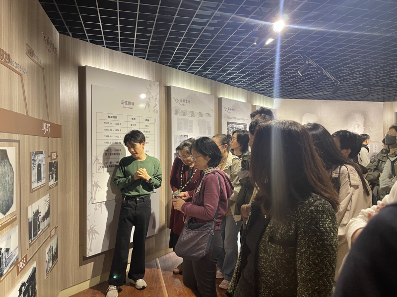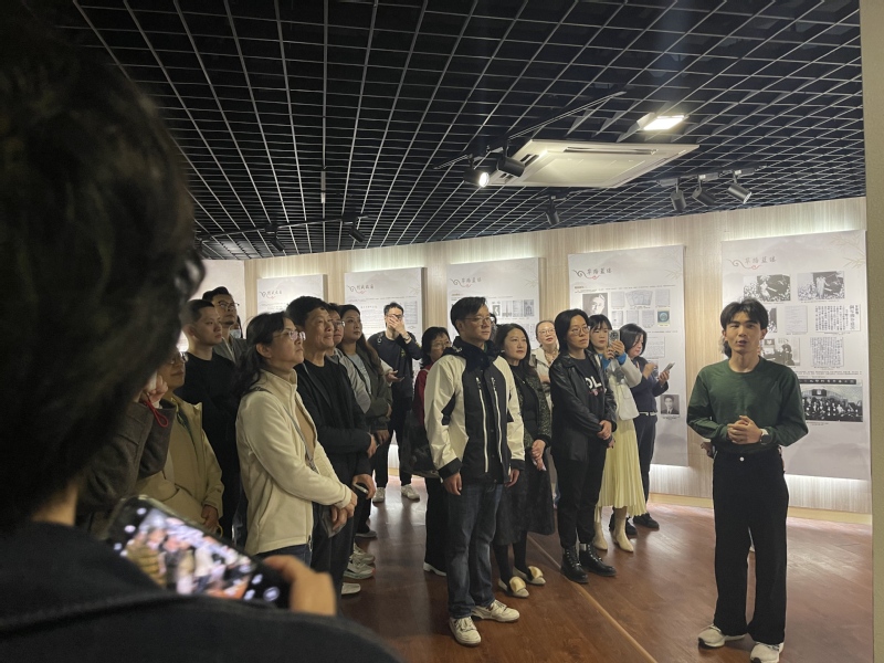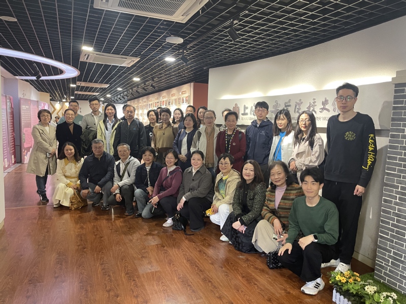 2026 年4 月17日下午,由钢琴系党支部书记孟莉老师带领的30余位来自上海市欧美同学会文创分会的成员们参观了校史馆。“海尚音苑”志愿者社团成员、艺术管理专业本科生刘浩化身“红色音乐讲解员”,以“弦歌百年,初心如磐”为主题,带领来宾们在音符与史料交织的时空里,重温上音与时代同频共振的红色记忆,共话百年前贤的初心与使命。