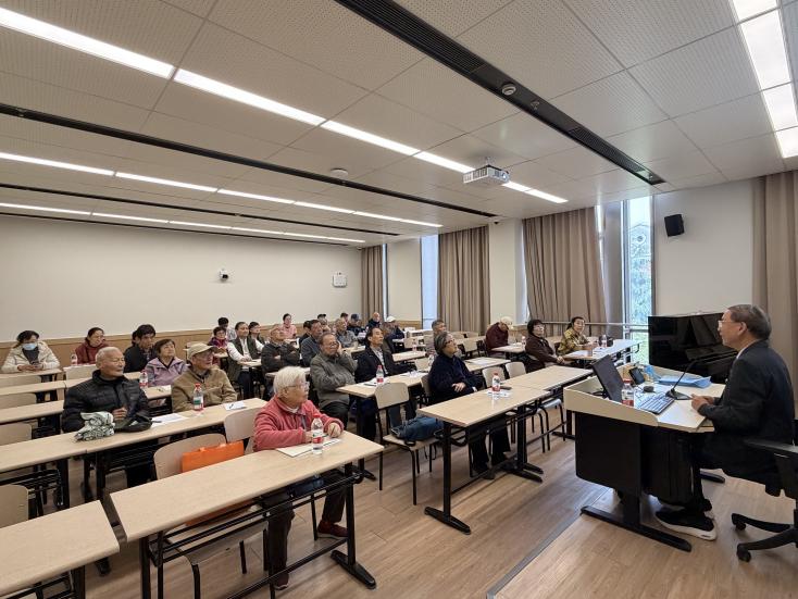 讲座中,罗克平同志紧扣“人民对美好生活的向往就是我们的奋斗目标”这一核心主题,以学习贯彻党的二十届四中全会精神为引领,结合习近平总书记关于树立和践行正确政绩观的重要论述,内容翔实、案例鲜活,兼具理论深度与实践温度。他结合我国发展成就与上海城市发展实践,用具体数据和鲜活案例展现了“人民对美好生活的向往”的生动实践。