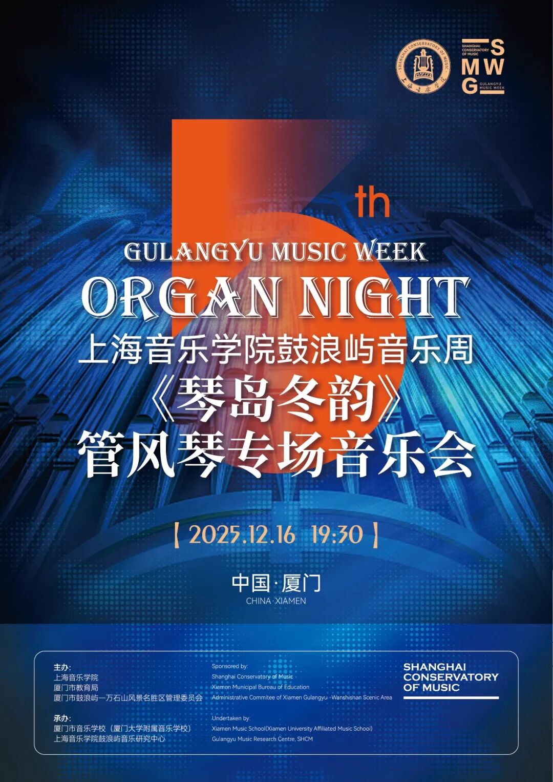 5场高品质师生音乐会将在厦门市音乐学校五通校区琴岛音乐厅、鼓浪屿校区音乐厅、鼓浪屿管风琴艺术中心奏响,生动践行“重视基础、严格教学、精于实践、善于总结”的上音优秀传统,这既是教学成果的集中检阅,更是高雅艺术惠民的美育实践。